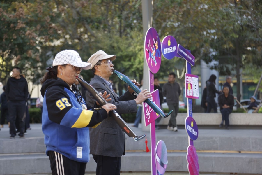 活动在舞蹈《吴越弄弦》中拉开帷幕,舞者以柔美的身姿演绎出江南特有的婉约韵味,迅速点燃了全场气氛。随后,京剧《贵妃醉酒》婉转开腔,引得观众凝神静听;双人电子管演奏《山巅之鹰》以磅礴气势展现雄鹰翱翔之姿。葫芦丝合奏《红歌四联奏》唤起人们的红色记忆,萨克斯与电子管合奏的《北国之春》又令人仿佛置身于温暖悠扬的北国春日。男声独唱《万水千山总是情》将山河壮阔与人情温婉巧妙融合,引来台下观众轻声应和,瞬间唤醒了跨越年代的集体记忆。