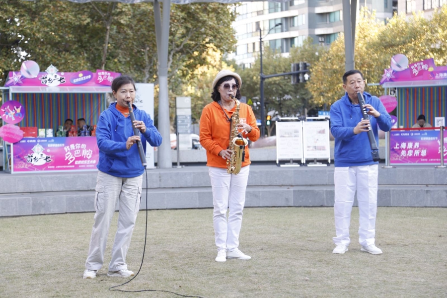 此外,光明集团居家桥怡养中心的负责人也登台分享,聚焦社区养老议题,传递温暖关怀。除了精彩的演出,现场还设有多个服务摊位。上海市健康养老发展(集团)有限公司带来普惠养老与冬季养生知识,尚体健康科技(上海)有限公司展示了数字化健康服务,吸引不少市民驻足咨询与体验。